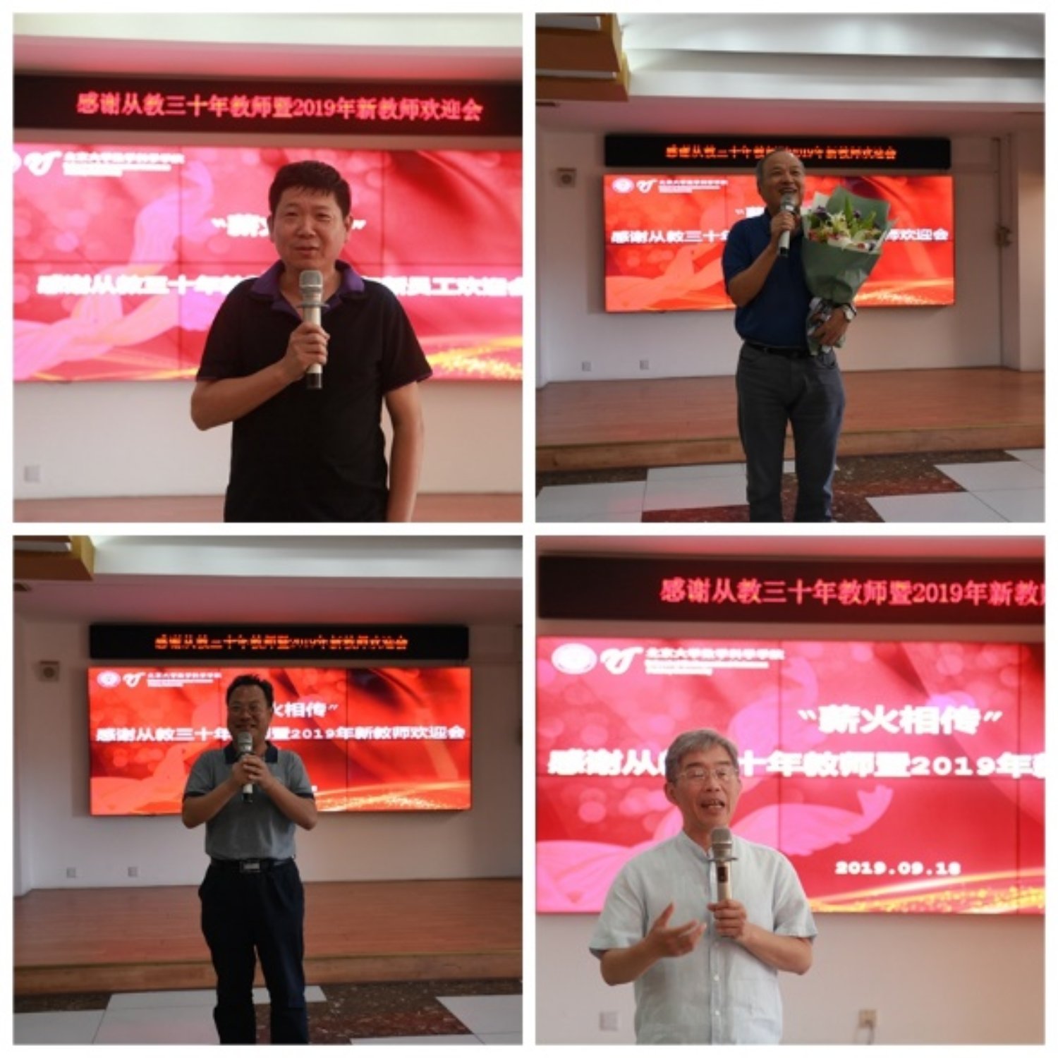 金秋九月,丹桂飘香。在这秋高气爽、阳光灿烂的收获季节里,新学年如约而至。2019年9月18日下午,“薪火相传”——感谢从教三十年教师暨2019年新教师欢迎会在北京大学理科一号楼1560教室举办。数学科学学院院长陈大岳,党委书记胡俊,副院长史宇光、李若,党委副书记董子静,工会主席周铁,副主席周蜀林、郑春鹏和学院的部分教职工参加了活动。活动由党委副书记兼副院长孙赵君主持。