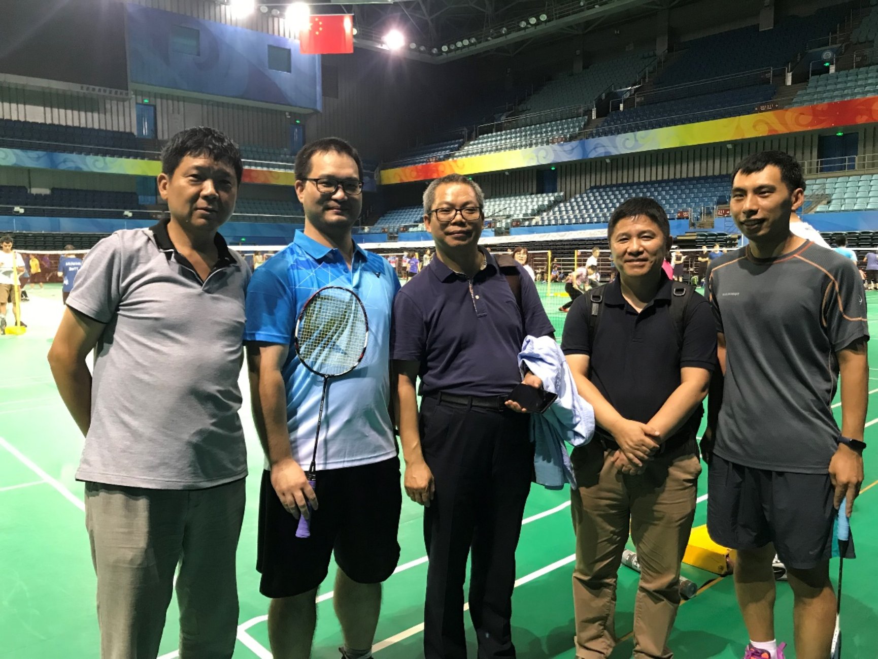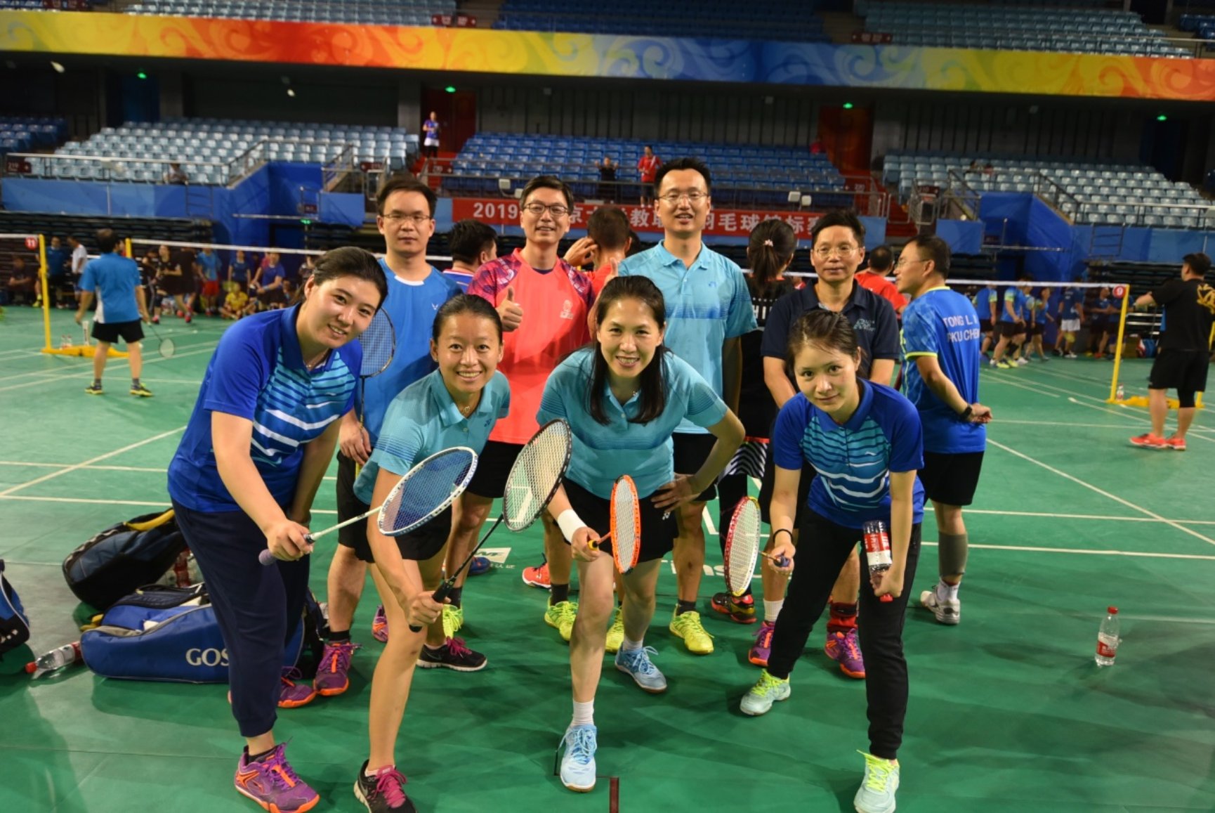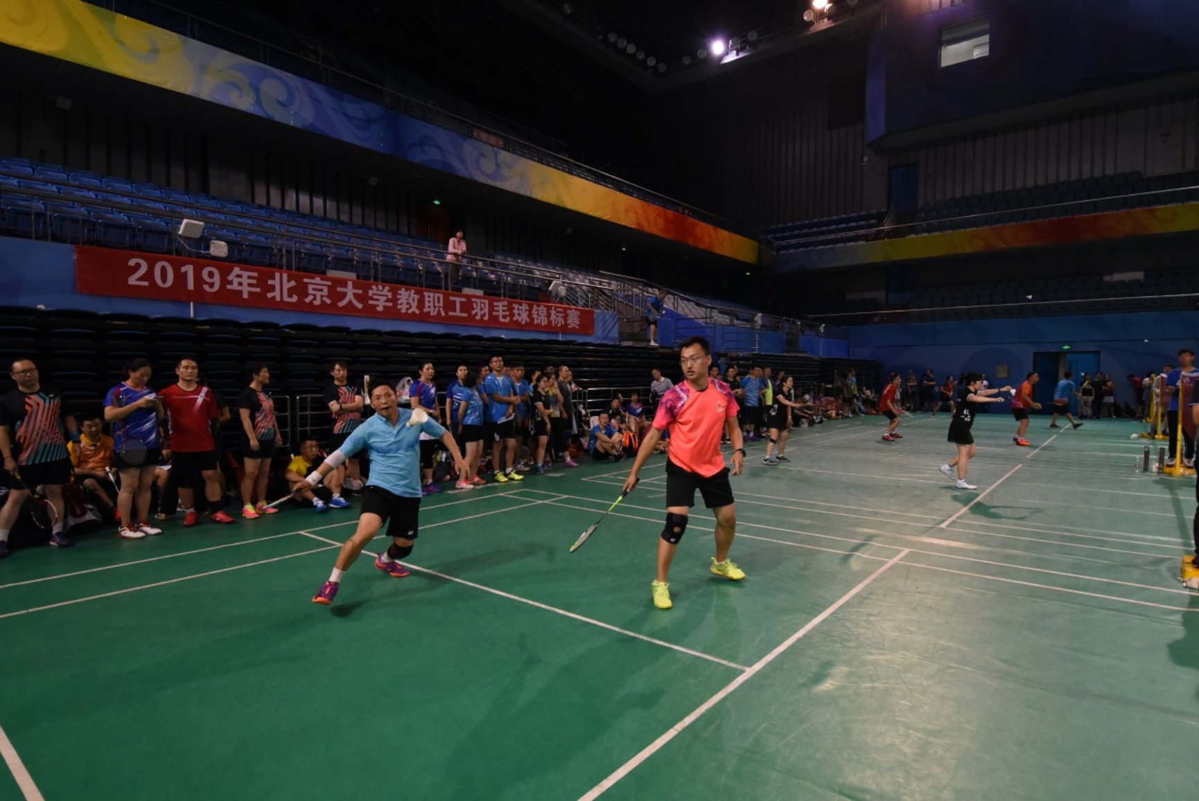 “2019年北京大学教职工羽毛球锦标赛”于9月23-26日在北京大学邱德拔体育馆成功举行。在学院工会主席周铁老师的号召下,在学院体育委员张树义老师、羽毛球队长马尽文老师、工会副主席周蜀林老师的精心组织下,数学学院和数学中心的教职工们纷纷踊跃报名,一共组成了3支队伍参赛,工会副主席郑春鹏老师和周蜀林老师带头参赛。学院书记胡俊老师亲自到场为队员们打气加油。