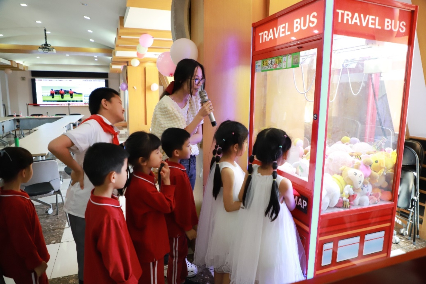 伴随着耳熟能详的儿歌串词,本次活动拉开了帷幕。工会的成员们和志愿者们一起把活动现场布置成了一个制造快乐、充满温馨的小家园,而数学学院和数学中心的宝贝们恰恰是快乐和温暖的源泉。数学学院和数学中心的宝贝们在家人的陪伴下来到了活动现场,入场的宝贝们用手中的笔画出了自己心目中的模样。孩子们一来到活动现场,立即被娃娃机吸引了,小朋友们有序排队玩起了抓娃娃的游戏。