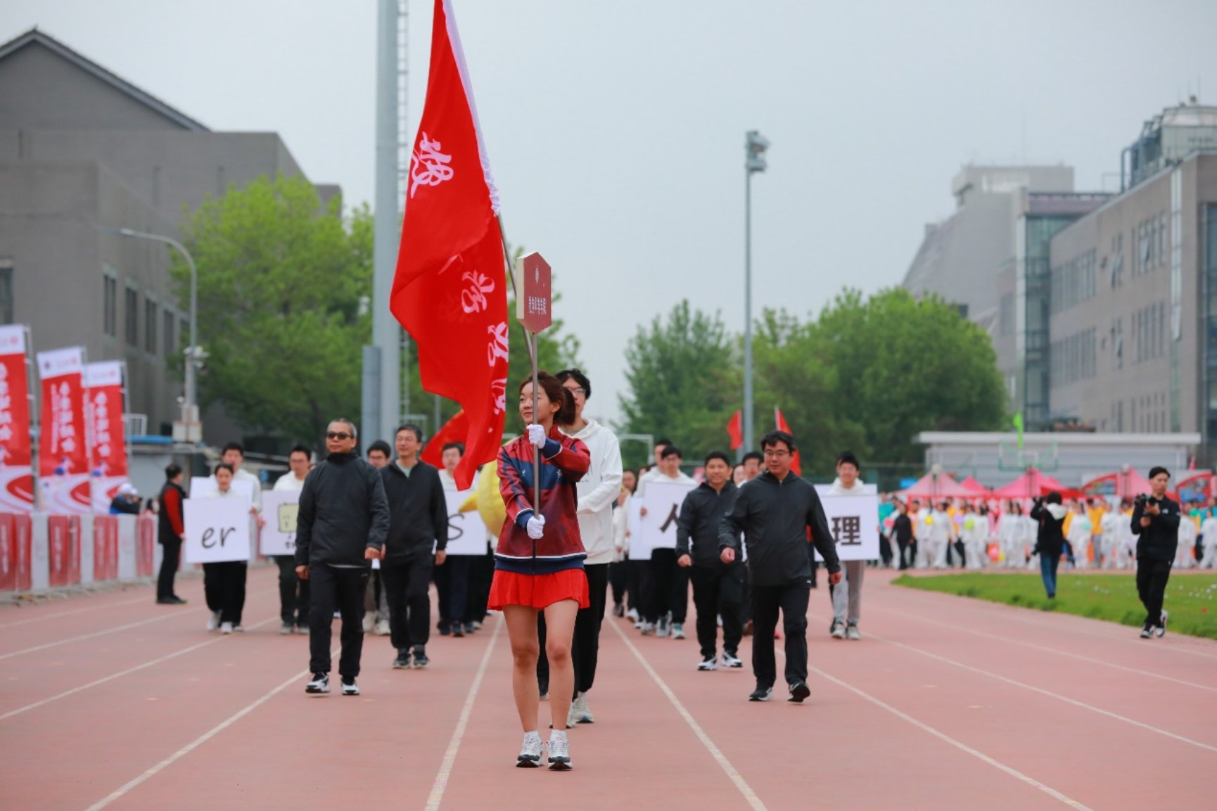 在开幕式上,数学院和数学中心教职工和学生一起走过主席台,展现了数学人对理想人生追求的信仰。