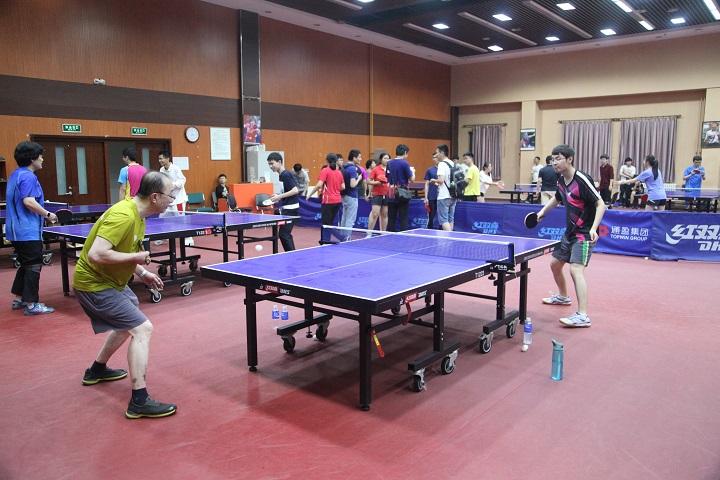 2018年5月25日下午5时,数学科学学院2018年夏季师生乒乓球友谊赛在邱德拔体育馆乒乓球馆进行。本次比赛有10位老师和10名同学参加。组织者总结了之前赛事时间过长的经验,将赛制修改为双败淘汰赛,经过数轮比拼后再选出8强进行淘汰赛。