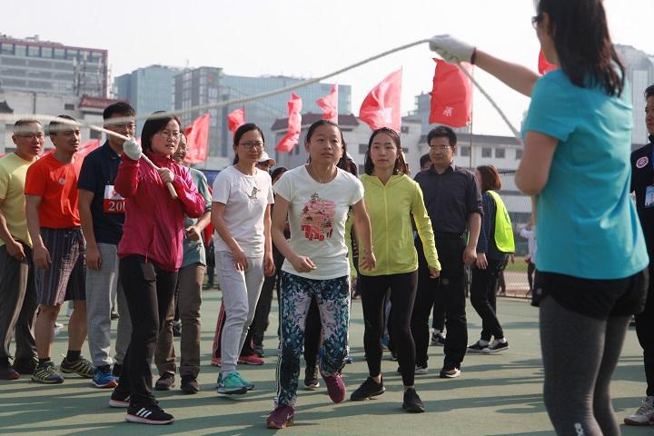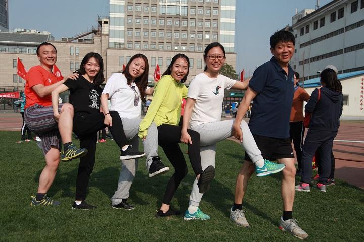 本次比赛,数学学院在团体项目上发挥出色。数学科学学院副院长刘雨龙、学院党委副书记兼工会主席孙赵君、党委副书记董子静等党政领导带头参与各项团体项目赛事。尽管由于平日工作繁忙缺乏训练,但数院教工在工会副主席郑春鹏老师的悉心指导下,利用赛前有限的时间完成了卓有成效的练习。数院教工在动力火车和袋鼠跳接力的男女四项赛事中齐心协力,全部进入前八名,拿到了名次积分。另外数院还在团体跳绳和4*400米混合接力中憾居第9位,在团体台阶比赛中位居并列第10位。这次团体项目全面开花,是数院近十年来在团体项目中的最佳表现,也助数院团体总分较去年有了10分的进步。