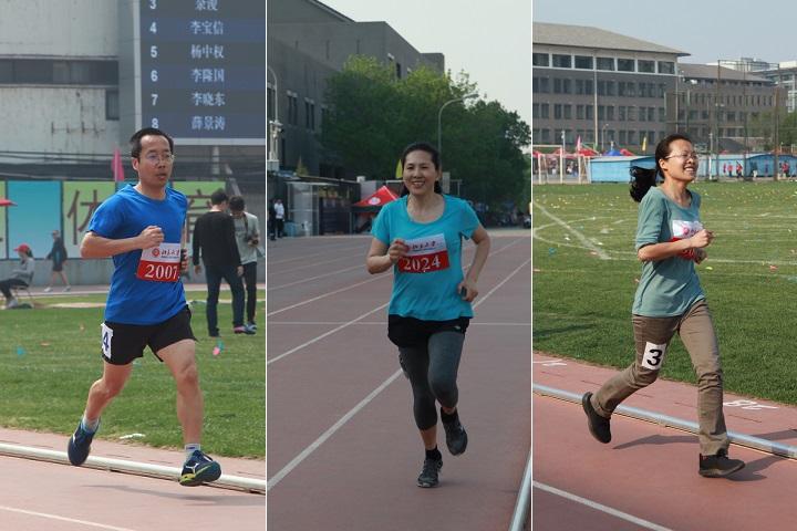 个人项目上,在工会体育委员张树义老师的积极组织下,数学学院工会派出了近年来最庞大的参赛阵容。其中钮凯福老师在男子B组实心球掷远比赛中以13米7的成绩实现个人突破,勇夺数学学院本次赛事唯一的冠军。刘雨龙老师在几天前刚刚参加完长跑活动的不利状态下稳扎稳打,在男子C组1500米比赛中获得季军。郑春鹏老师则在女子C组800米比赛中连续第5次获得季军,并将近五年的个人最好成绩缩短了将近15秒,与冠军成绩仅相差不到2秒。初次参赛的崔文慧老师也在女子A组800米比赛中获得第7名的不俗战绩。老将胡旸老师在女子D组立定跳远和30米运球绕杆折返跑比赛中均获得第8名。数学学院其他多位老师同样稳定发挥,最终有11人次和1个接力项目获得名次积分,27人次和1个接力项目获得参与积分。