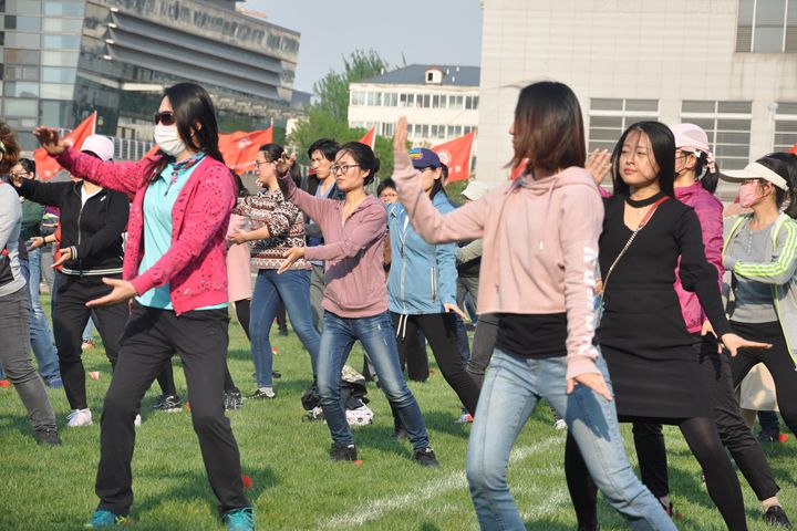 和北京国际数学研究中心的教职工从3月中旬开始每周二、四下午3:30-4:30在理科一号楼的空地上进行太极拳团体操的训练。
