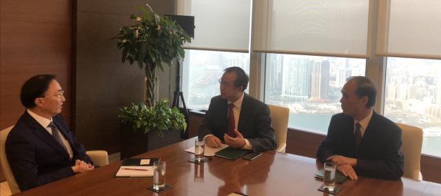 院长陈大岳教授在香港拜会北京大学名誉校董陈国钜先生和林高演先生。北京大学教育基金会副秘书长耿姝陪同。