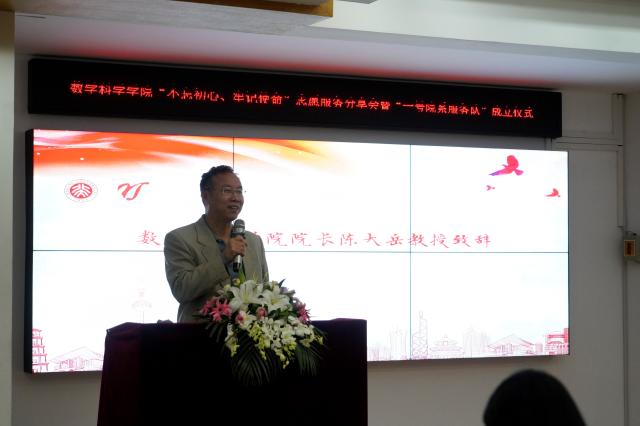 院长陈大岳教授致辞,他强调,志愿服务活动能够充分锻炼同学们的各项能力。比如极具学院特色的高数辅导项目不仅能帮助同学解决疑难问题,也是提升志愿者学业水平的重要途径。这就是所谓的“教学相长”。他引用丁石孙老校长的话:“今天数学教育的质量,决定着我们明天科学人才的水平”,数院承担了全校的数学课程教学任务,也应当相应地做好辅导任务。这关乎未来各行各业中科学人才的数理基础,关乎未来中国的科技水平与核心竞争力。