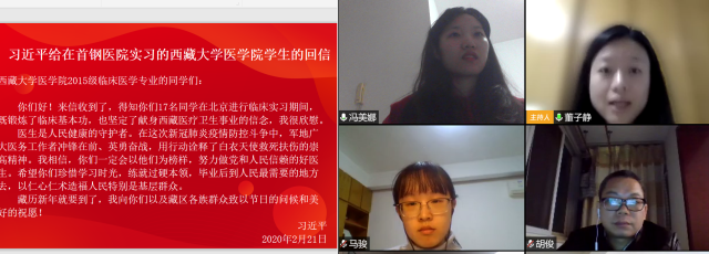3月1日晚20:00,数学科学学院召开学生党支部书记线上视频会议,学习习近平总书记给在北京大学首钢医院实习的西藏大学医学院学生的回信精神,并就当前时期的学生党建工作进行部署。院党委书记胡俊、党委秘书梁岚与13位学生党支部书记参会,会议由院党委副书记董子静主持。