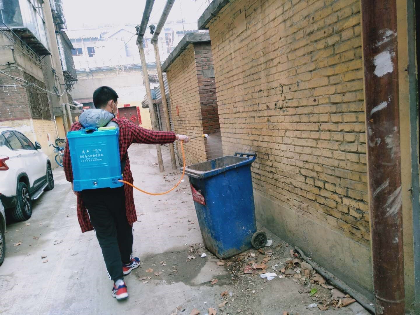 倡导志愿服务,做出青年贡献。19级硕士生王晓宇在疫情防控期间,主动报名武汉志愿者,想要到一线去为抗击疫情贡献一份力量。后因武汉地区暂不接收外地志愿者选择转战社区,到所在社区志愿消毒服务,每日背着消毒桶到社区所辖的3个小区进行消毒服务,为身边的疫情防控贡献一份力量。