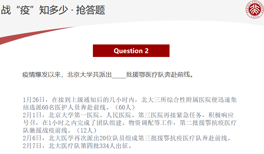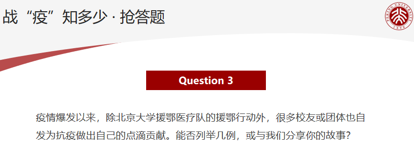 团支部书记林家梁宣读了习近平总书记的回信全文。同学们热议回信,并通过线上竞答的方式学习了北京大学援鄂医疗队的事迹,表达了所思所感。