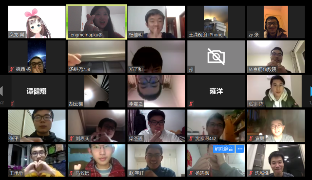 3月16日晚,数学科学学院本科生党支部联合18本1班团支部开展“跨越万里 共学回信”线上主题党团日。33名分布在全国各地和海外的同学齐聚一堂,结合身边经历的战“疫”点滴,学习习近平总书记给北京大学援鄂医疗队全体“90后”党员的回信,决心践行青年使命肩负青年担当,为湖北祈愿战“疫”加油。