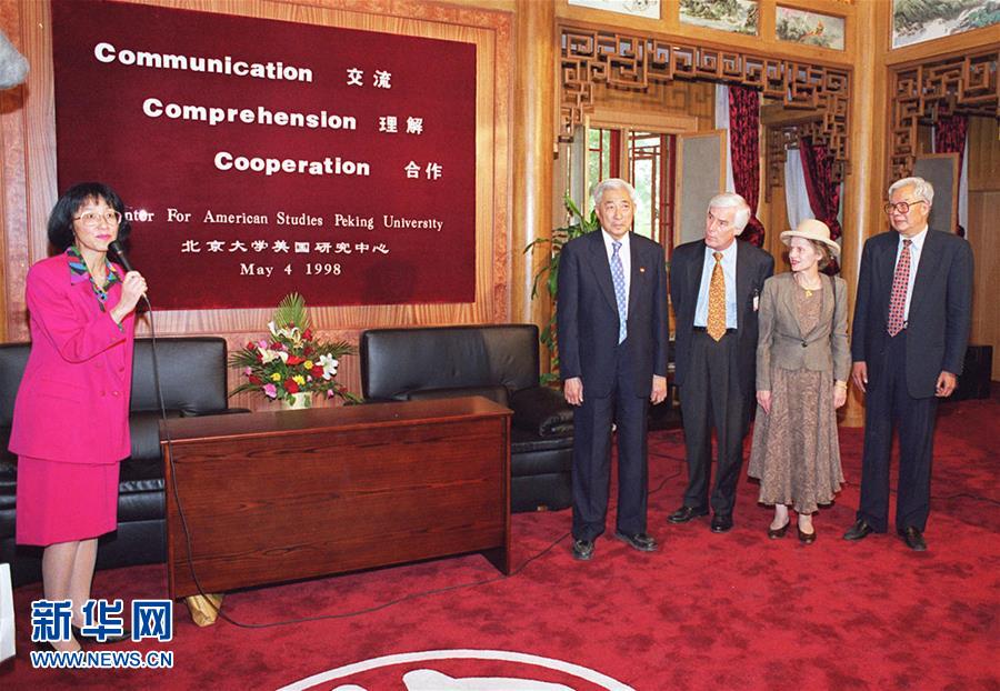 1998年5月4日,丁石孙同志出席北京大学美国研究中心成立仪式。 新华社记者 韩宇 摄